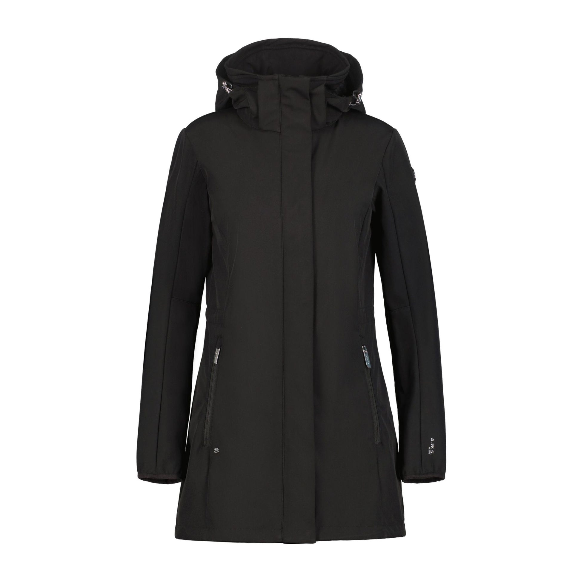 "Luhta softshell jacket for women. Slim fit. Two-way-adjustable hood. Detachable hood. Elastic cuffs. Two zipped front pockets. Lined hand warming pockets. Two-way front zip. Double wind placket. Adjustable hem. Adjustable waist. Shaped hem. Logo label. Water column 8 000 mm. Breathability 3 000 g\m2\24h. The 4-way stretch material stretches in all directions giving maximum freedom of movement. When designing this A.W.S. ACTIVE product, special attention has been paid to functionality and comfort, so the product is suitable for both active and casual use. Softshell is a functional material for a wide range of outdoor activities. The product provides weather protection while being comfortably flexible at the same time. The fabric surface has been treated with a water-repellent finish. This windproof material provides optimal wind protection and warmth."