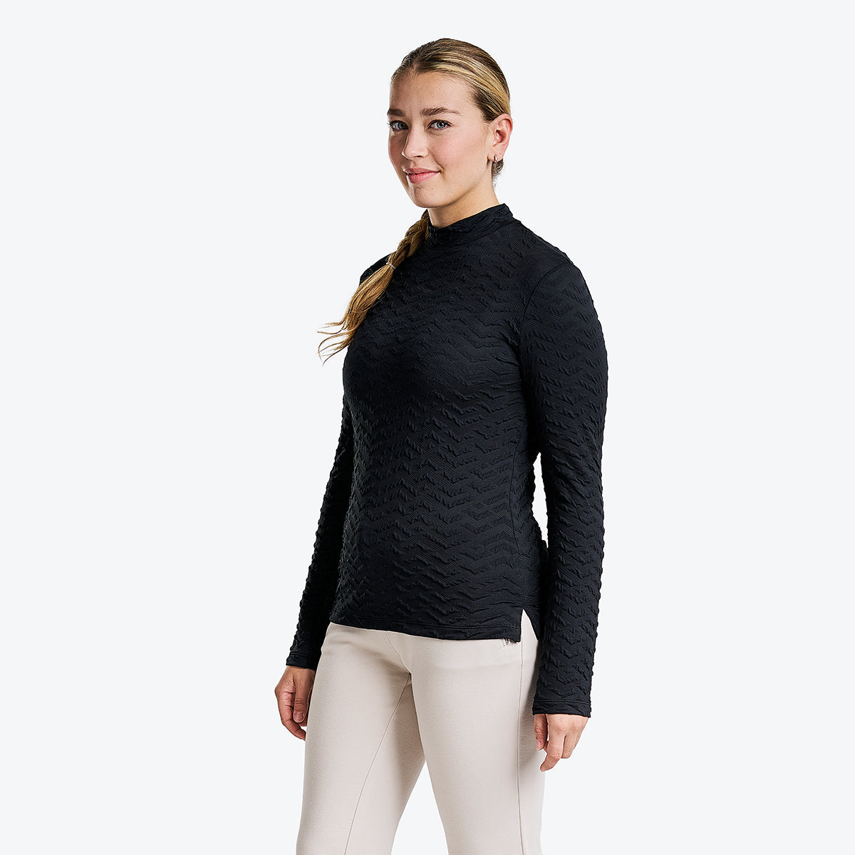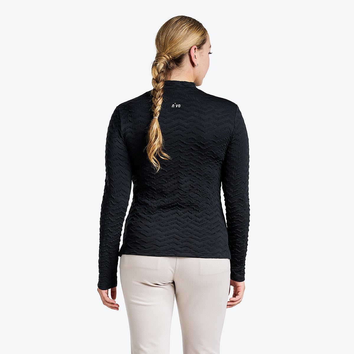 "Introducing the Mady golf mock from NVO. This long sleeve golf top is lightweight and comfortable. It features UPF 30+ properties protecting you from UV rays. It’s also quick-dry and moisture-wicking to ensure you stay dry and fresh, even on warmer days. Moreover, the 3D design makes it even more fashion. You can wear it either on the golf course or for everyday wear."