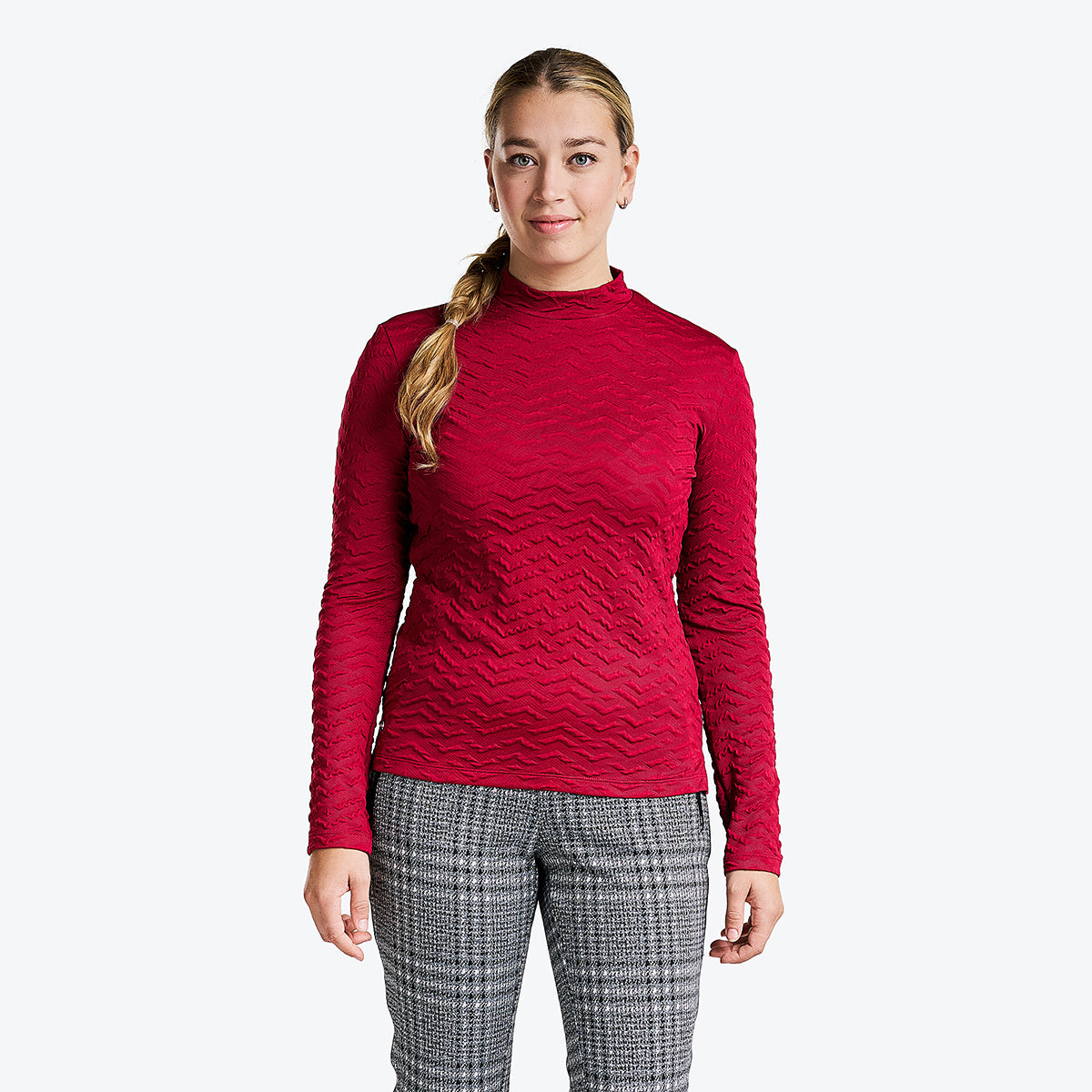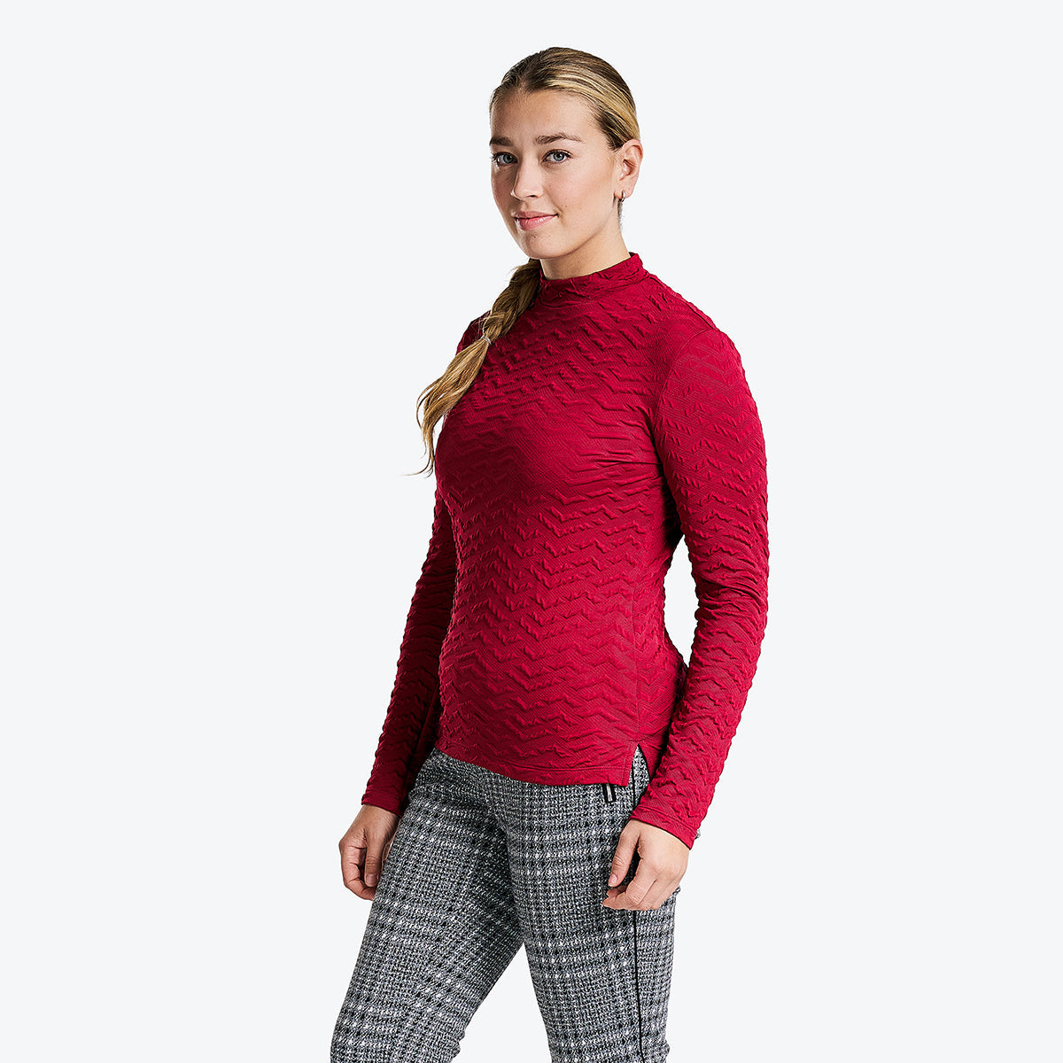 Introducing the Mady golf mock from NVO. This long sleeve golf top is lightweight and comfortable. It features UPF 30+ properties protecting you from UV rays. It’s also quick-dry and moisture-wicking to ensure you stay dry and fresh, even on warmer days. Moreover, the 3D design makes it even more fashion. You can wear it either on the golf course or for everyday wear.