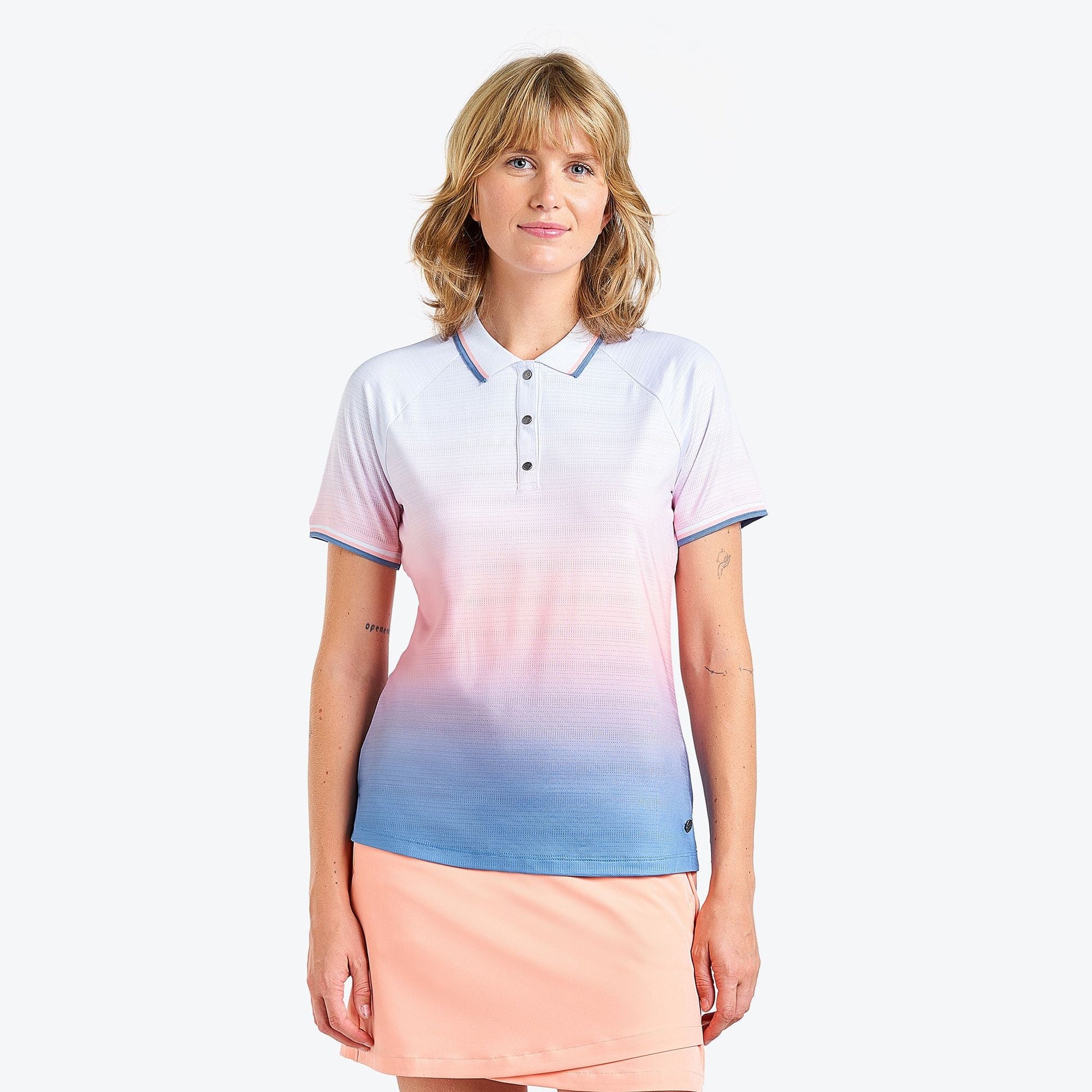 "Ideal for female golf enthusiasts, the Malai polo from NVO combines lightweight, stretchy and breathable features, enabling you to swing with unrestricted movement. The moisture-wicking fabric guarantees a cool feel throughout the day.