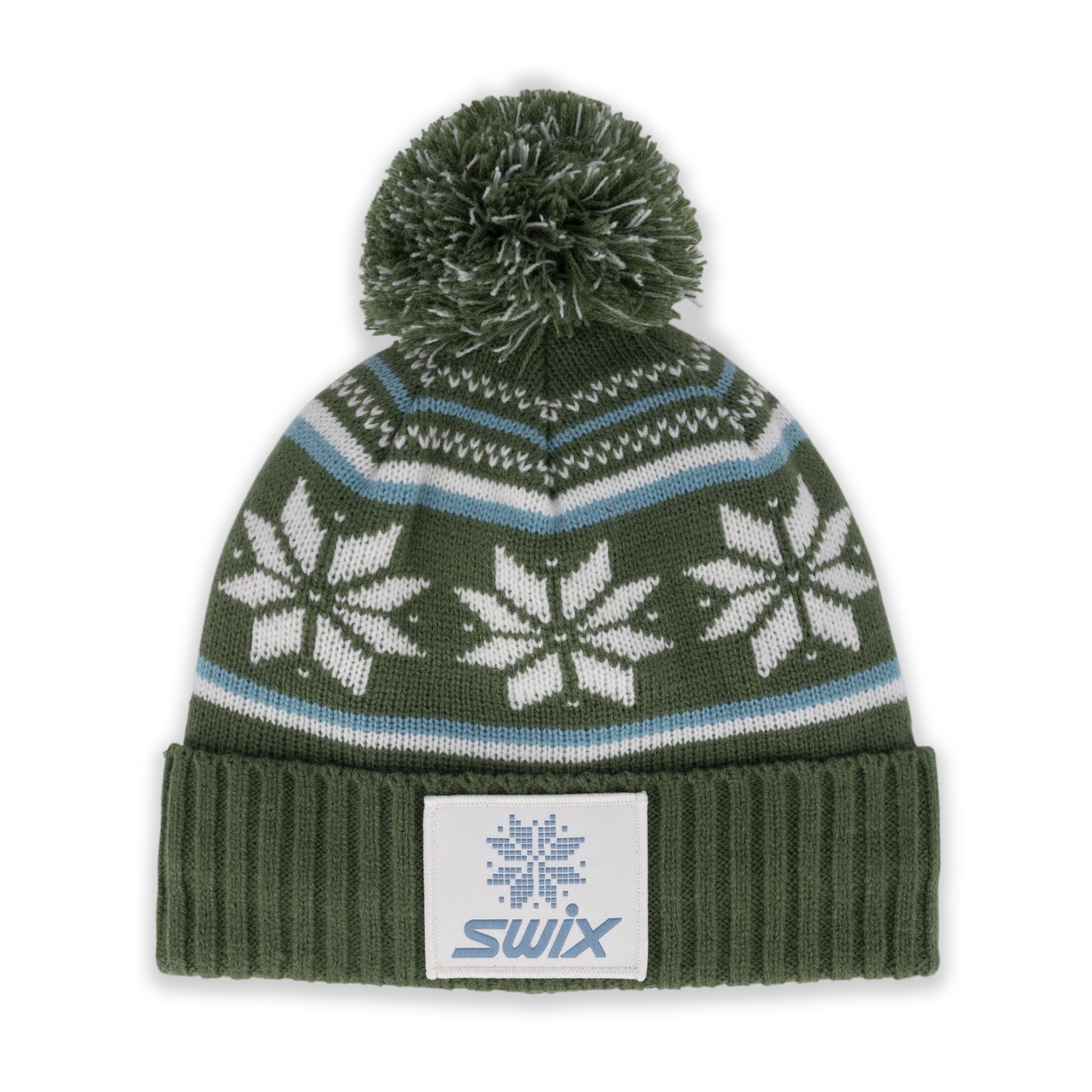 "Add a touch of winter magic to your look with our beanie, adorned with a classic snowflake pattern and an oversized pom-pom. The upturned rib and soft fleece lining ensure you stay warm and cozy, making it a stylish and practical choice for chilly days."