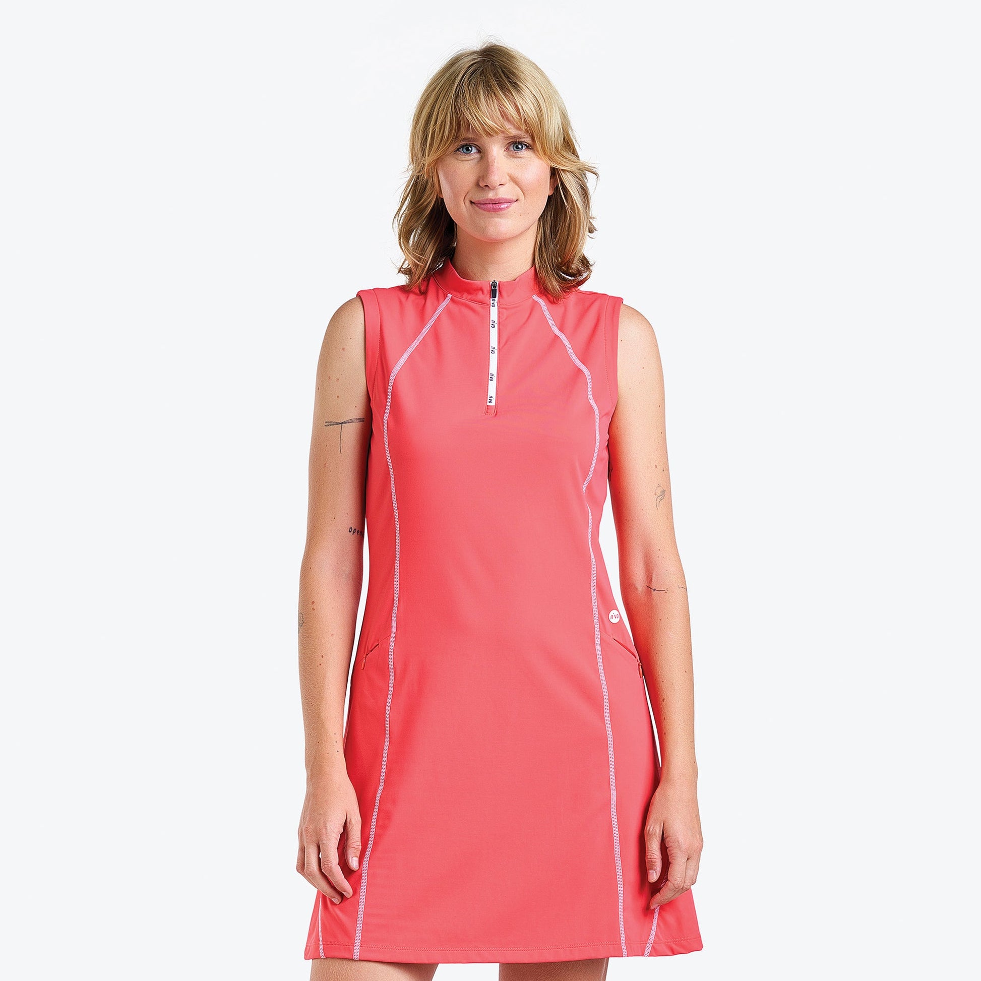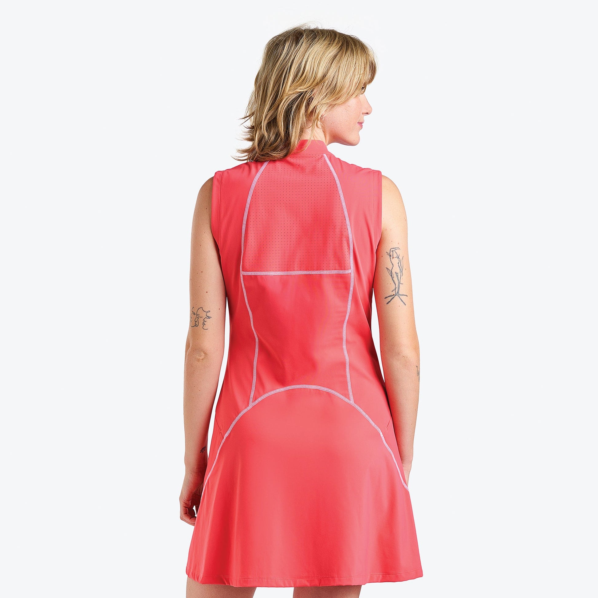 Made with perforated double Jersey, this golf dress allows air to circulate freely. The cooling, quick-drying and moisture-wicking fabric adds extra convenience. What’s more, this mid-length dress has a sun protection factor of 30+ to let you make the most of the sunny days!