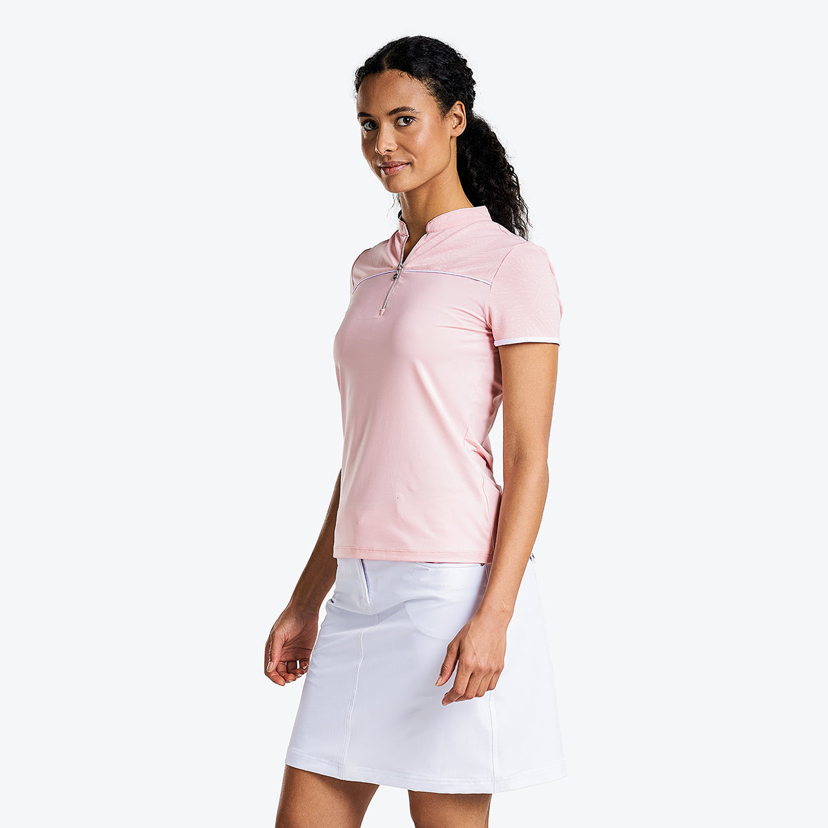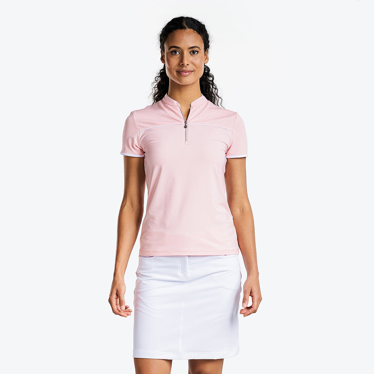 Comfort meets with style in this short sleeve polo. The fabric works to keep you dry with its moisture wicking properties.