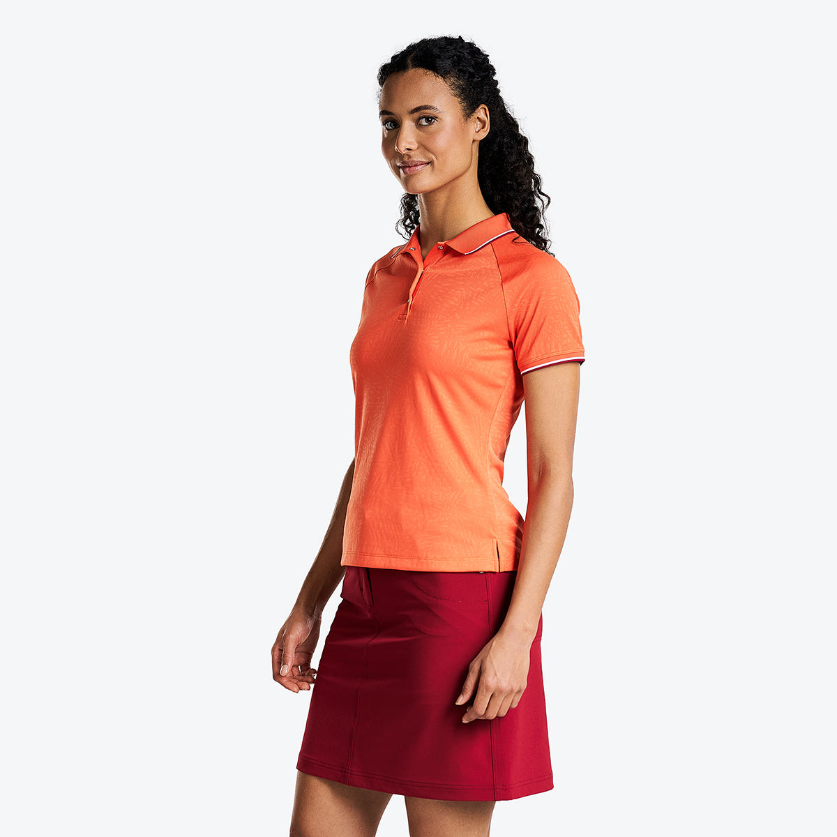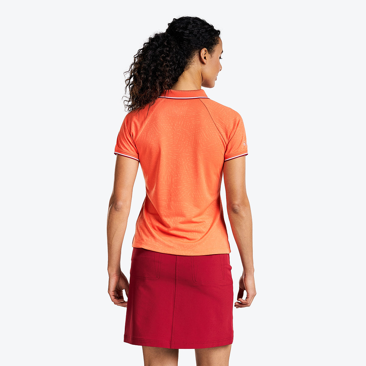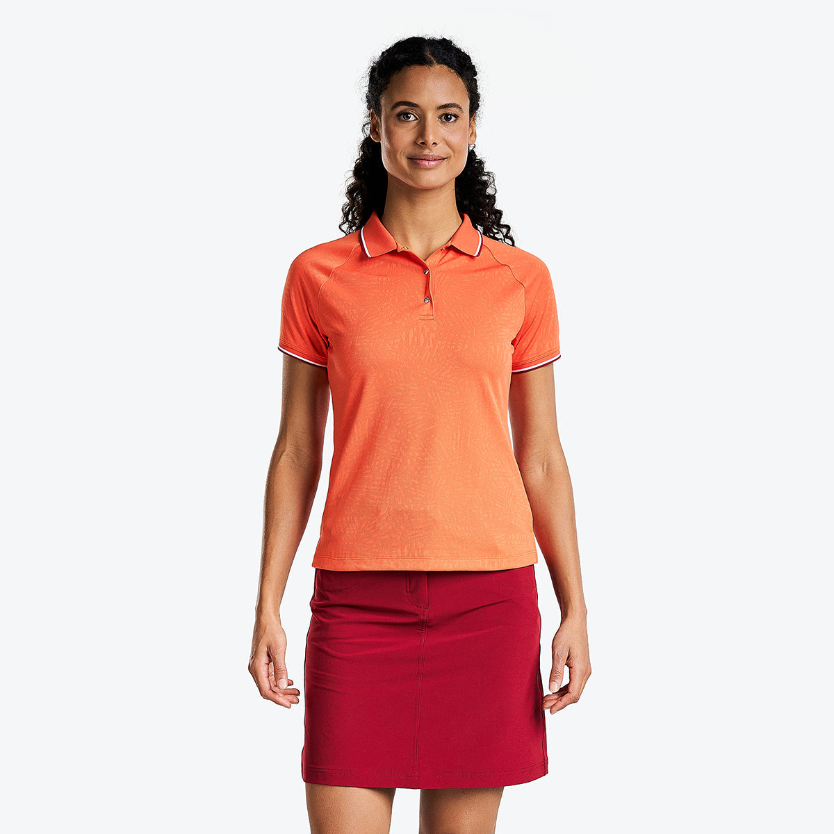 Are you looking for the perfect short sleeve golf mock? Discover Carli from NVO, a stylish and functional top with an original and lovely design to make you stand out on the green. This unique golf mock is quick-dry and has moisture-wicking technology and antimicrobial and cooling features, which avoid the build-up of bacteria and odours. It protects you from sun damage with its UPF 50+ sun protection and is designed with a ¼ zipper to make it easy to slip on and off. The fabric is soft and lightweight while providing unparalleled breathability and maximum movement, so get ready to give your best performance!
