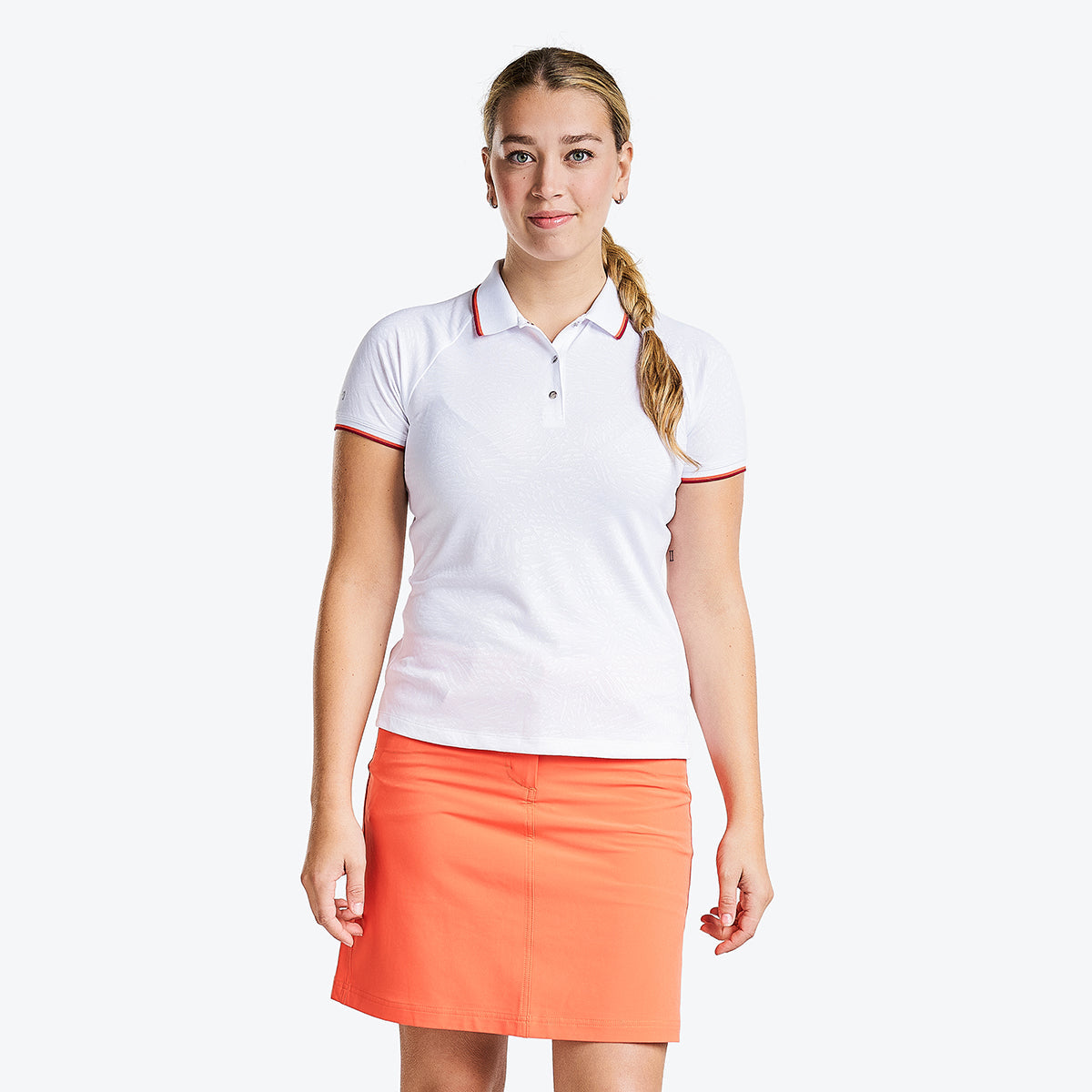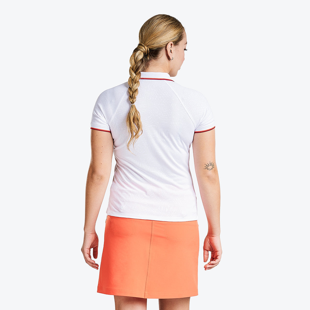 Are you looking for the perfect short sleeve golf mock? Discover Carli from NVO, a stylish and functional top with an original and lovely design to make you stand out on the green. This unique golf mock is quick-dry and has moisture-wicking technology and antimicrobial and cooling features, which avoid the build-up of bacteria and odours. It protects you from sun damage with its UPF 50+ sun protection and is designed with a ¼ zipper to make it easy to slip on and off. The fabric is soft and lightweight while providing unparalleled breathability and maximum movement, so get ready to give your best performance!