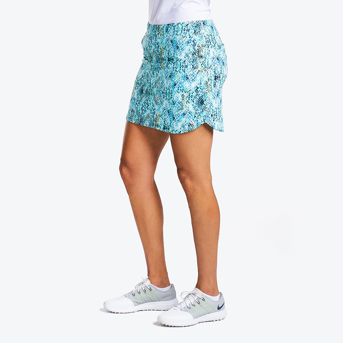 NVO's Laine is a pull-on skort made from a stretchy, lightweight, and comfortable fabric that gives you flexibility in your movements. It has an elastic waistband, and the softness of the material, made of polyester and elastane, gives you more flexibility for your golf game and the best swing. In addition to being breathable, antimicrobial, and cooling, the NVO Laine golf skort fabric dries quickly and wicks away moisture, keeping you cool and preventing bacteria build-up. Air circulates, and you can focus on your game.