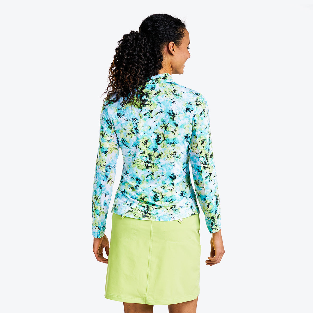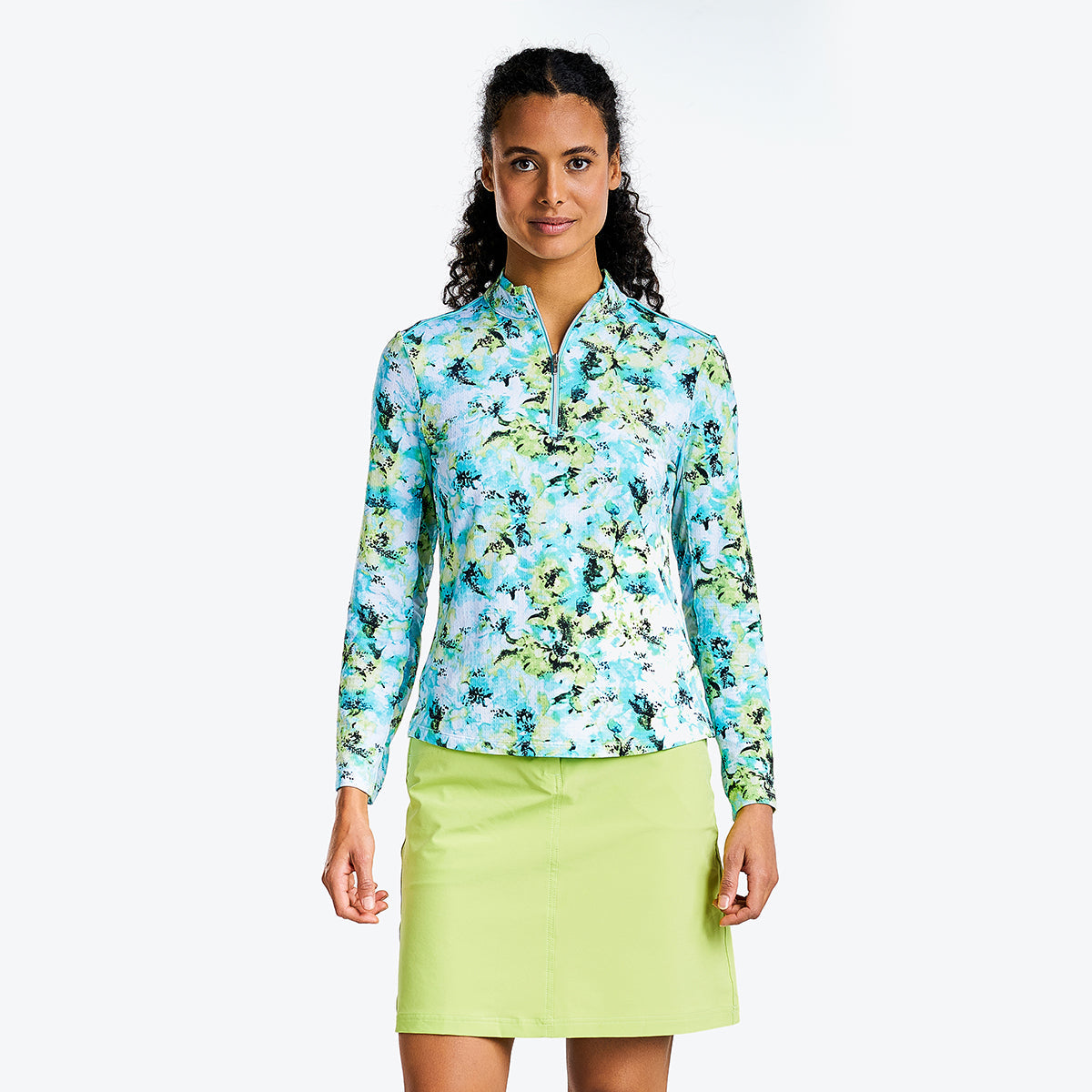 Discover the Laurisa long-sleeve mock from NVO. Soft and lightweight, the fabric of this golf top gives you more flexibility in your movements so you can concentrate on your game. Made of a breathable, antimicrobial, and cooling material, the Laurisa keeps you comfortable on the golf course by allowing air to circulate and regulating your body temperature: feel fresh no matter the temperature.
