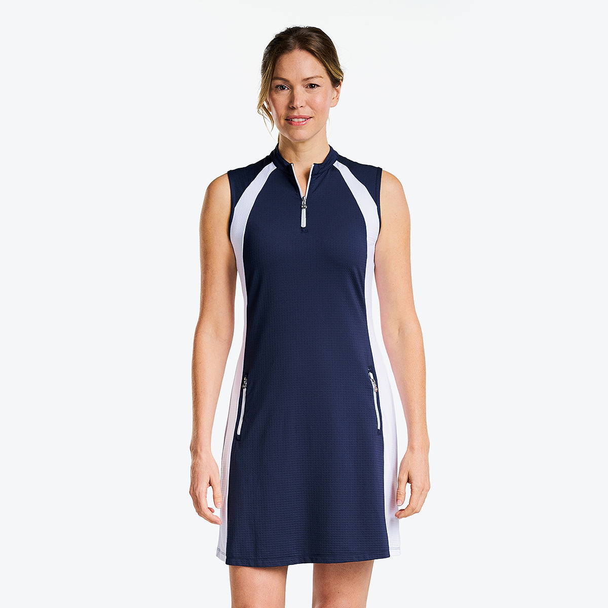 This beautiful golf dress from NVO is ideal for summer days because of its cooling and breathable properties that allow air to circulate and its antimicrobial properties that inhibit the growth of bacteria. It also protects you from the sun's harmful rays with its UPF 50+ sun protection. In addition to comfort and functionality, the Lily dress from NVO is designed with a sidewall pattern that gives you a distinctive fit that will give you confidence on the golf course.