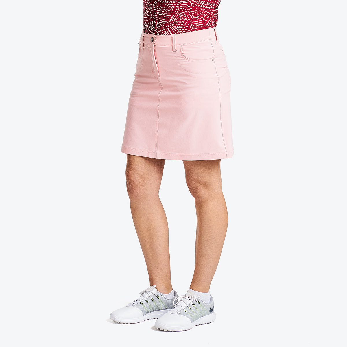 The Marika skort from NVO is moisture wicking, perfect for an active lifestyle. This cute skort moves with you and follows your movement thanks to its 4-way stretch fabric. Available in an array of solid colours, it is the perfect core item to have in your wardrobe. Feel great on the golf course with your new favourite skort!