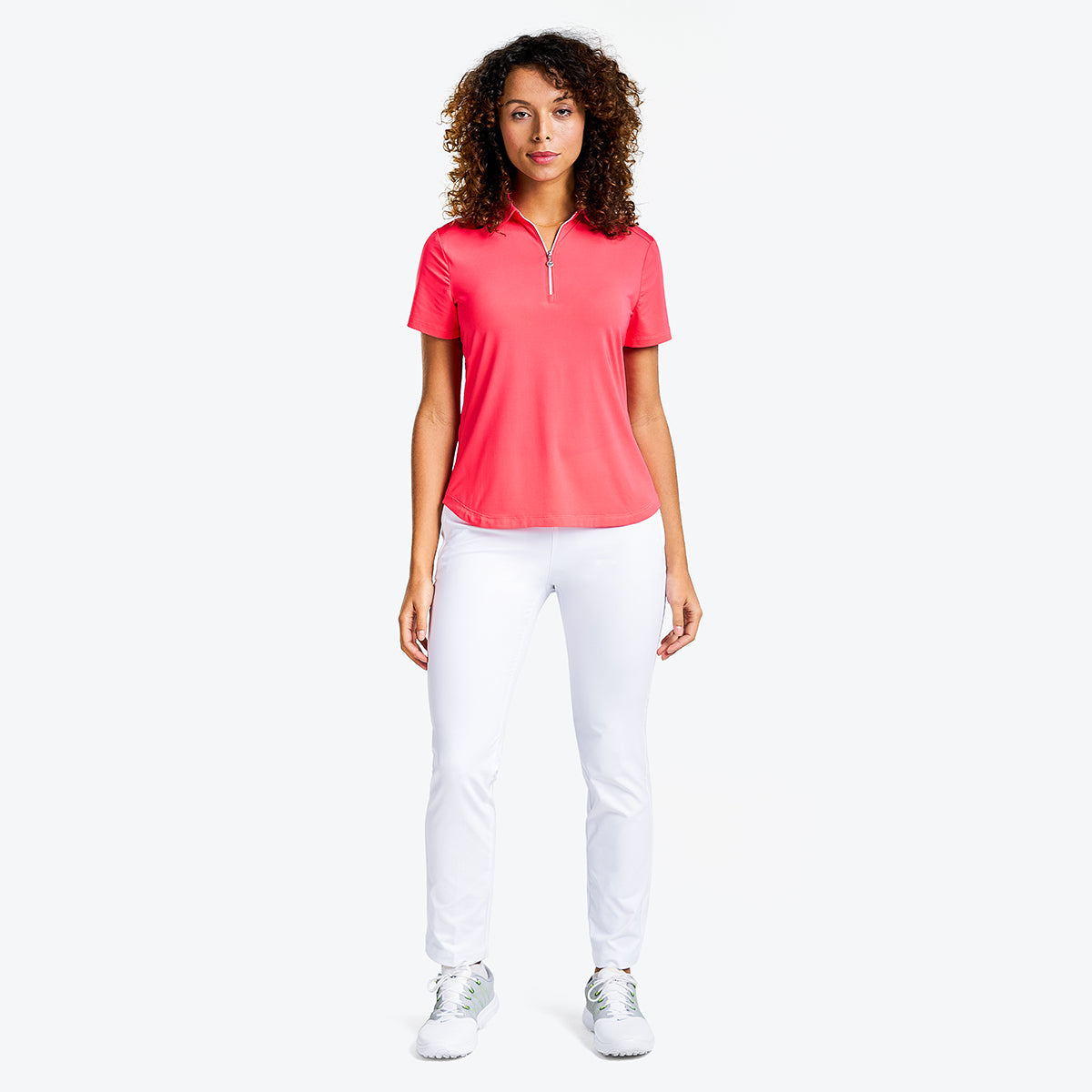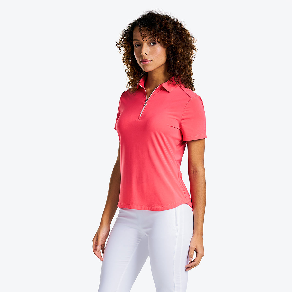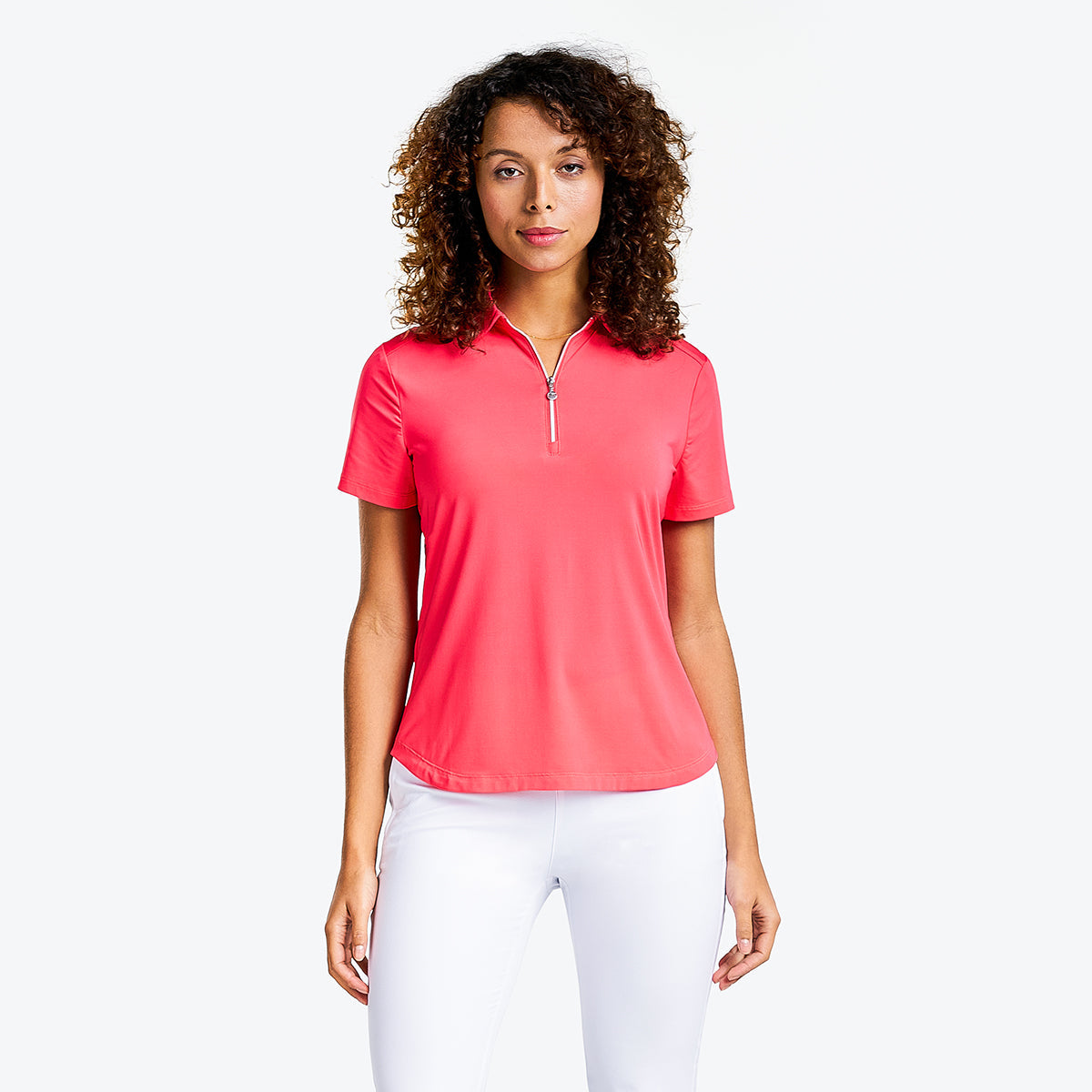 The Naila golf polo from NVO protects you from the harmful sun’s rays thanks to its UPF 30+ properties. You can enjoy long warm days on the green and be comfortable thanks to its quick dry and moisture-wicking fabric. Odours are neutralized, and air can freely circulate so that you feel fresh and focused on your game. Plus, the lightweight jersey is soft and light, which keeps you cool!