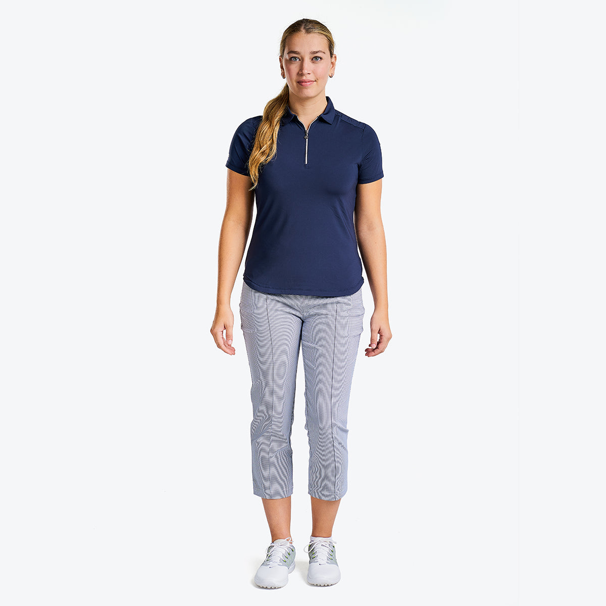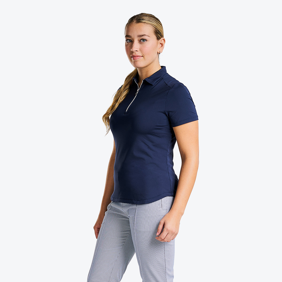 The Naila golf polo from NVO protects you from the harmful sun’s rays thanks to its UPF 40+ properties. You can enjoy long warm days on the green and be comfortable thanks to its quick-dry and moisture-wicking fabric. Air can freely circulate so that you feel fresh and focused on your game. Plus, the lightweight jersey is so soft and light that it will keep you cool and comfortable!