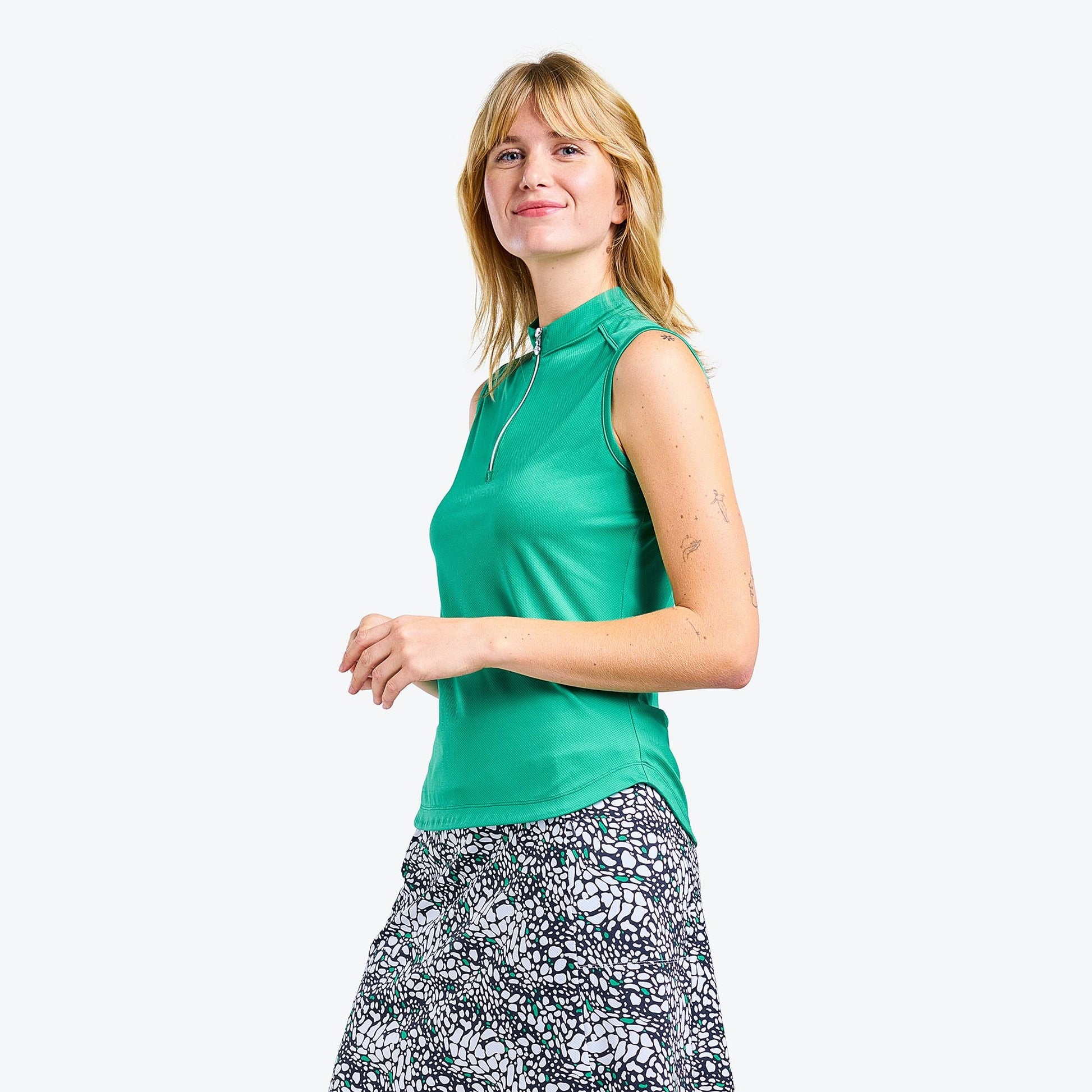 Wear this NVO golf top on sunny days! Its 50+ sun protection will shield you from harmful rays and allow you to enjoy the golf course with peace of mind while feeling comfortable in the cooling, breathable fabric. The significant advantage? The soft, elegant Jacquard fabric adds a touch of modernity, comfort, and class."