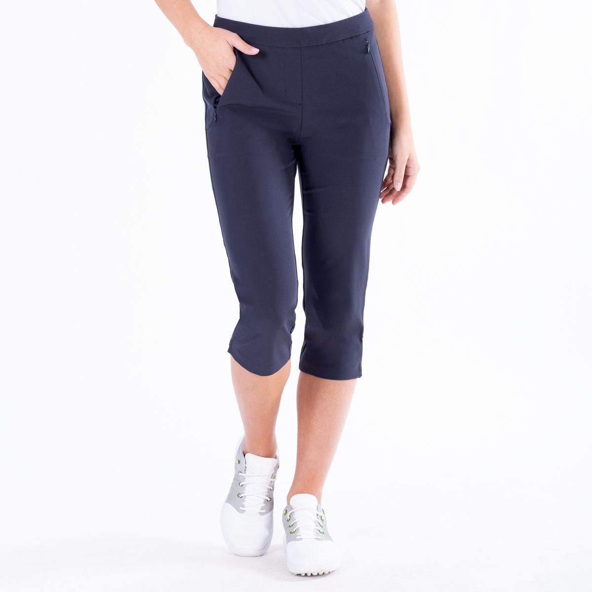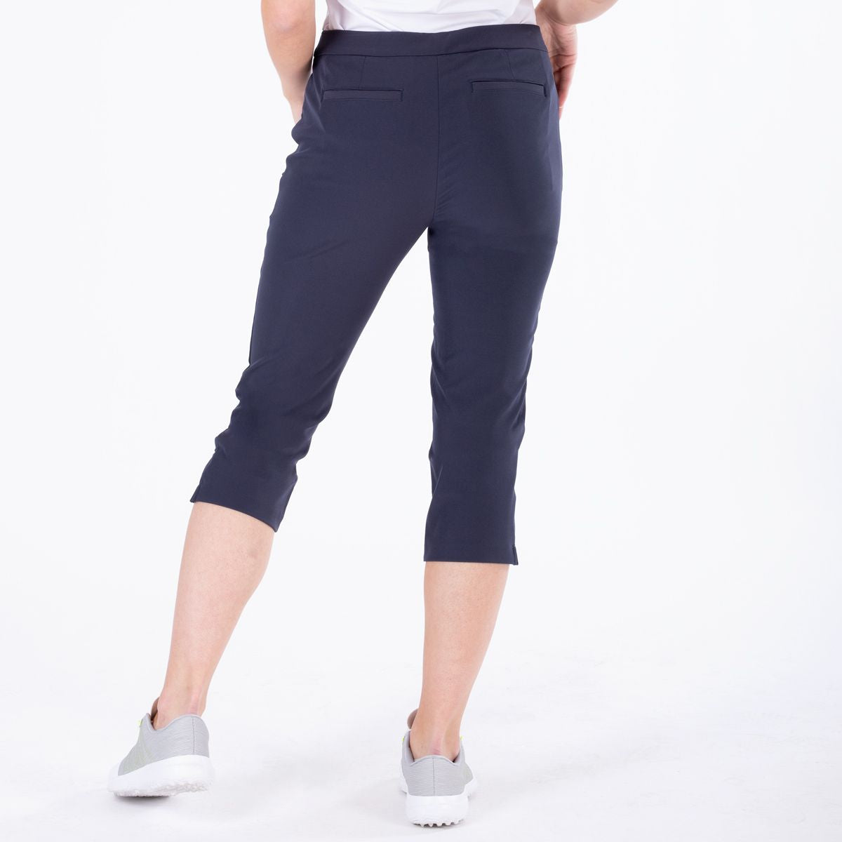 These NVO pull-on Capri feature 4 way stretch fabric and are ideal for indoor or outdoor activities. The inner elastic at the waist guarantees comfort.