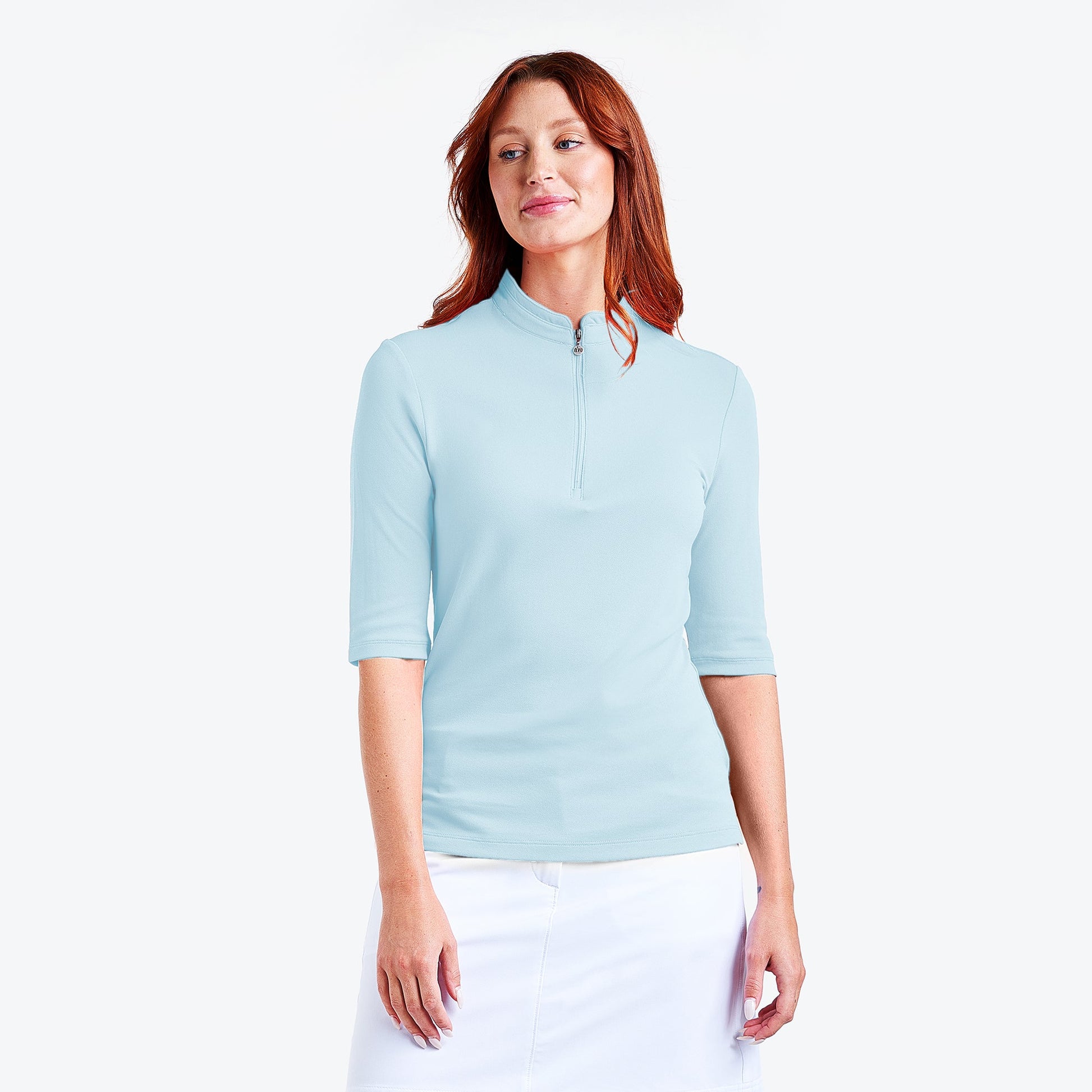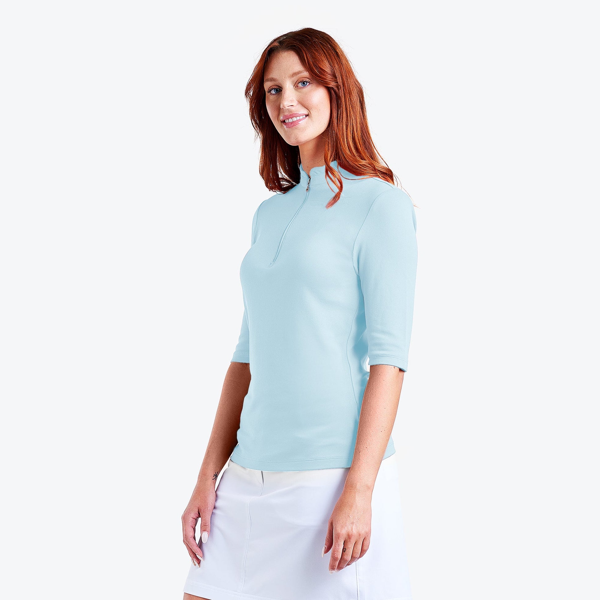 This flattering quarter-zip mock top isn’t just for looks. The Noa II mock from NVO keeps you comfortable with moisture-wicking fabric and UPF 40+ protection.