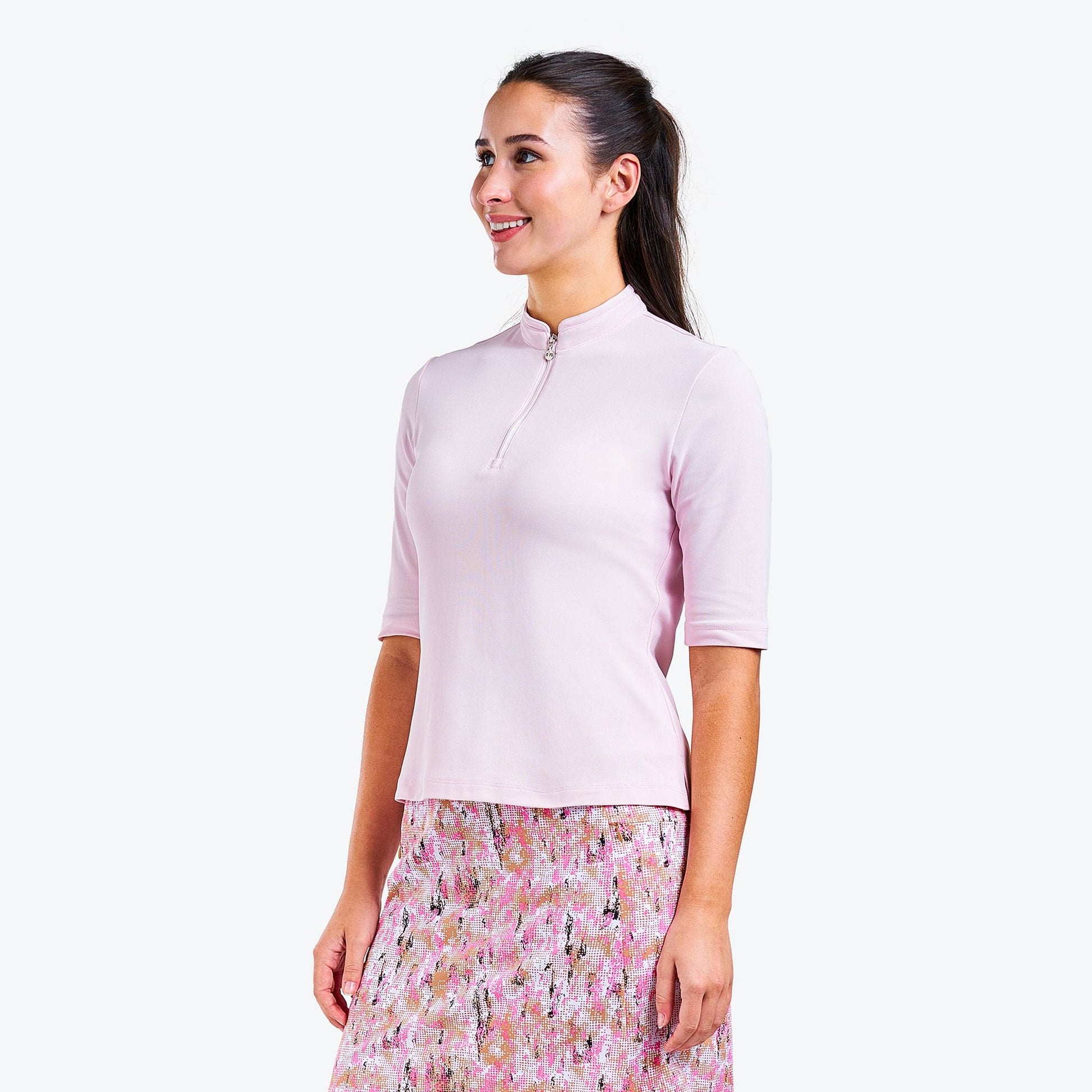 "This flattering quarter-zip mock top isn’t just for looks. The Noa II mock from NVO keeps you comfortable with moisture-wicking fabric and UPF 40+ protection.