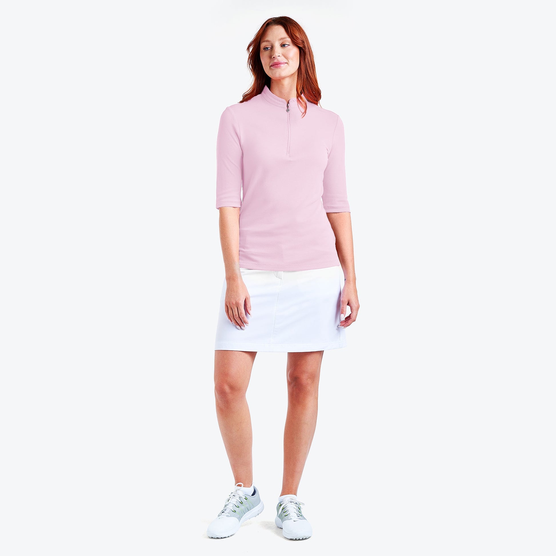 This flattering quarter-zip mock top isn’t just for looks. The Noa II mock from NVO keeps you comfortable with moisture-wicking fabric and UPF 40+ protection.