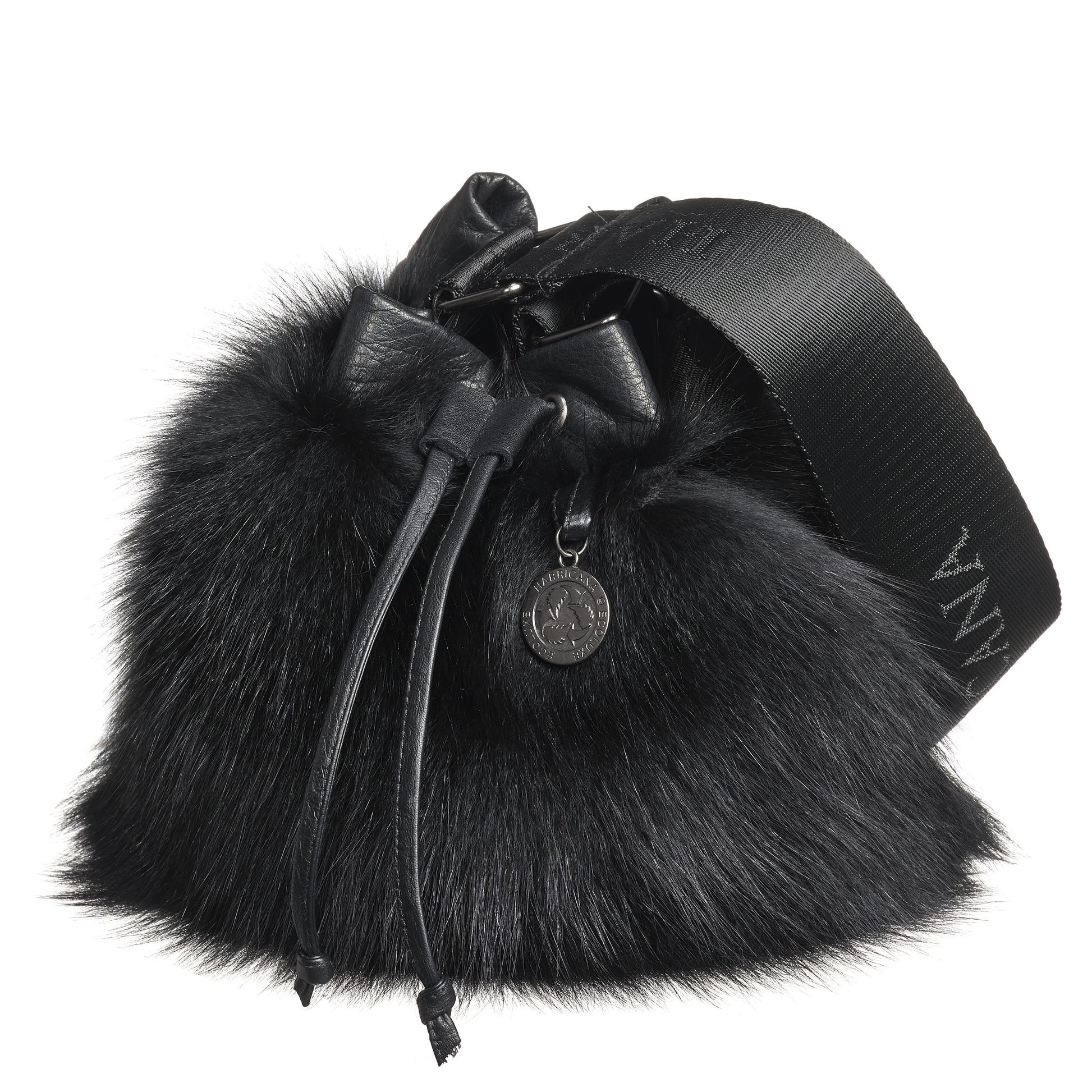 GABBIE F - LEATHER DRAW CORD POUCH BAG W UPCYCLED FUR
