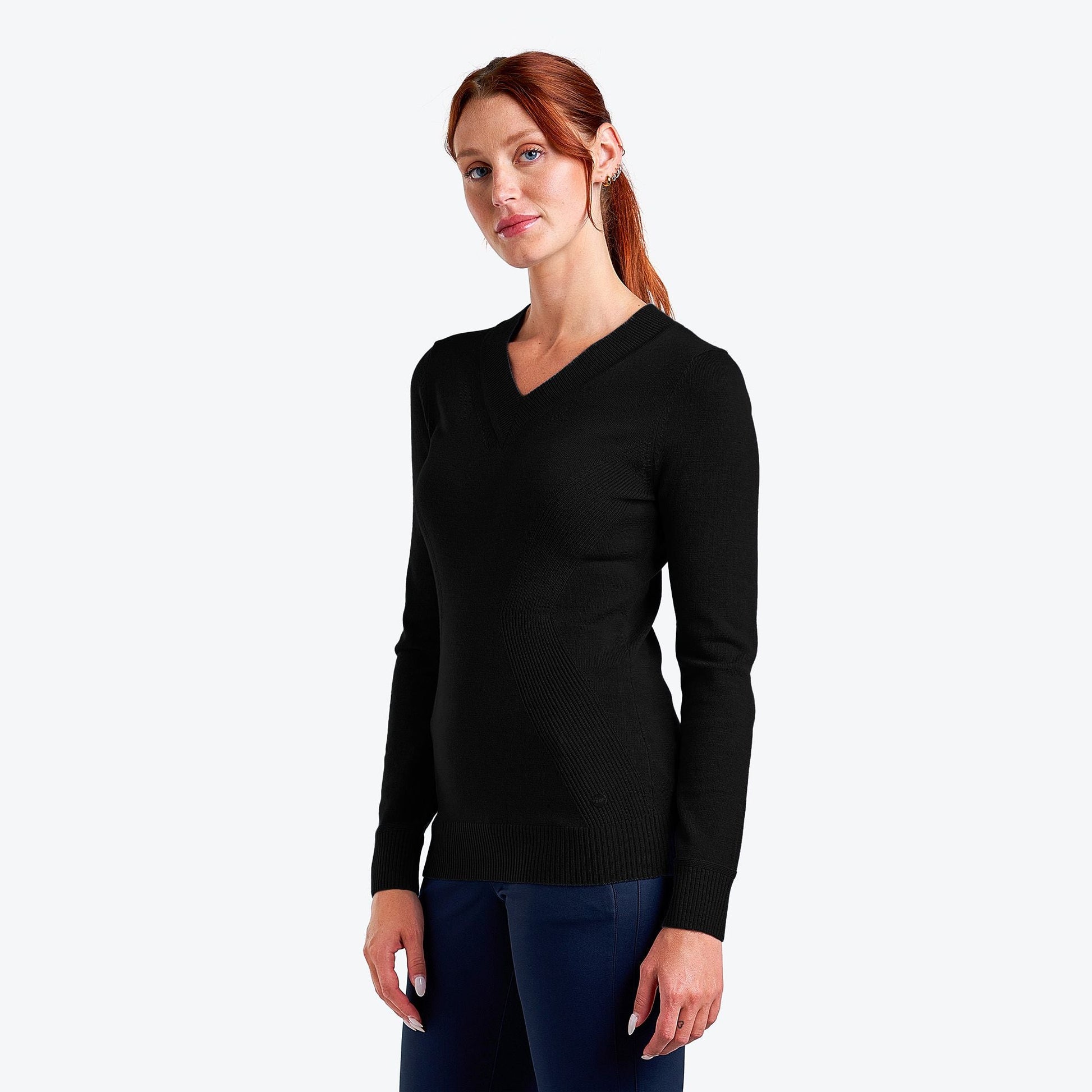 "With its long sleeves and 30+ UV protection, the Nicole sweater from NVO protects you from the cold and the harmful rays.